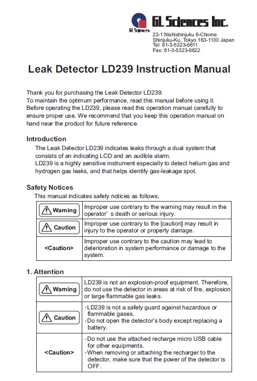 Gas Leak Detector LD239 adapts thermal conductivity technique between target gases and referential gas.