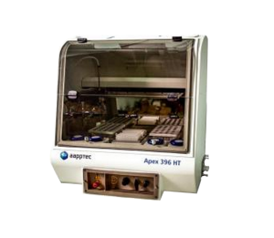 The Apex 396HT Peptide Library Synthesizer is the ideal peptide instrument for drug discovery, SAR studies, receptor binding studies and other applications utilizing high throughput screening of peptide libraries. The Apex 396HT automatically prepares and cleaves peptide libraries into standard 96 well titer plates ready for concentration and screening.