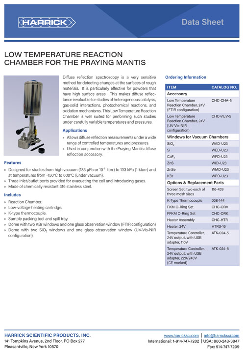 Designed for studies from high vacuum (133 μPa or 10-6 torr) to 133 kPa (1 ktorr) and at temperatures from -150°C to 600°C (under vacuum).