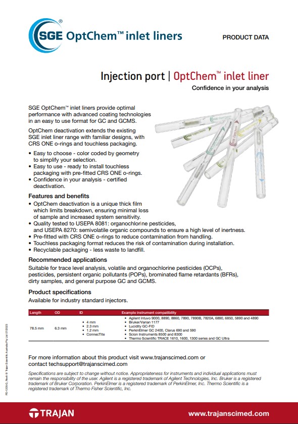- Desactivación OptChem: Película gruesa única que minimiza la pérdida de muestra y mejora la sensibilidad del sistema al limitar el desgaste.