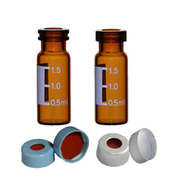 Los microviales de boca precinto utilizan cápsulas de 8 mm para equipos de Perkin Elmer para capacidades de 800 ul, y para Waters 96 con volúmenes de 1 y 1,2 ml y para Agilent con capacidad de 600 y 800 ul